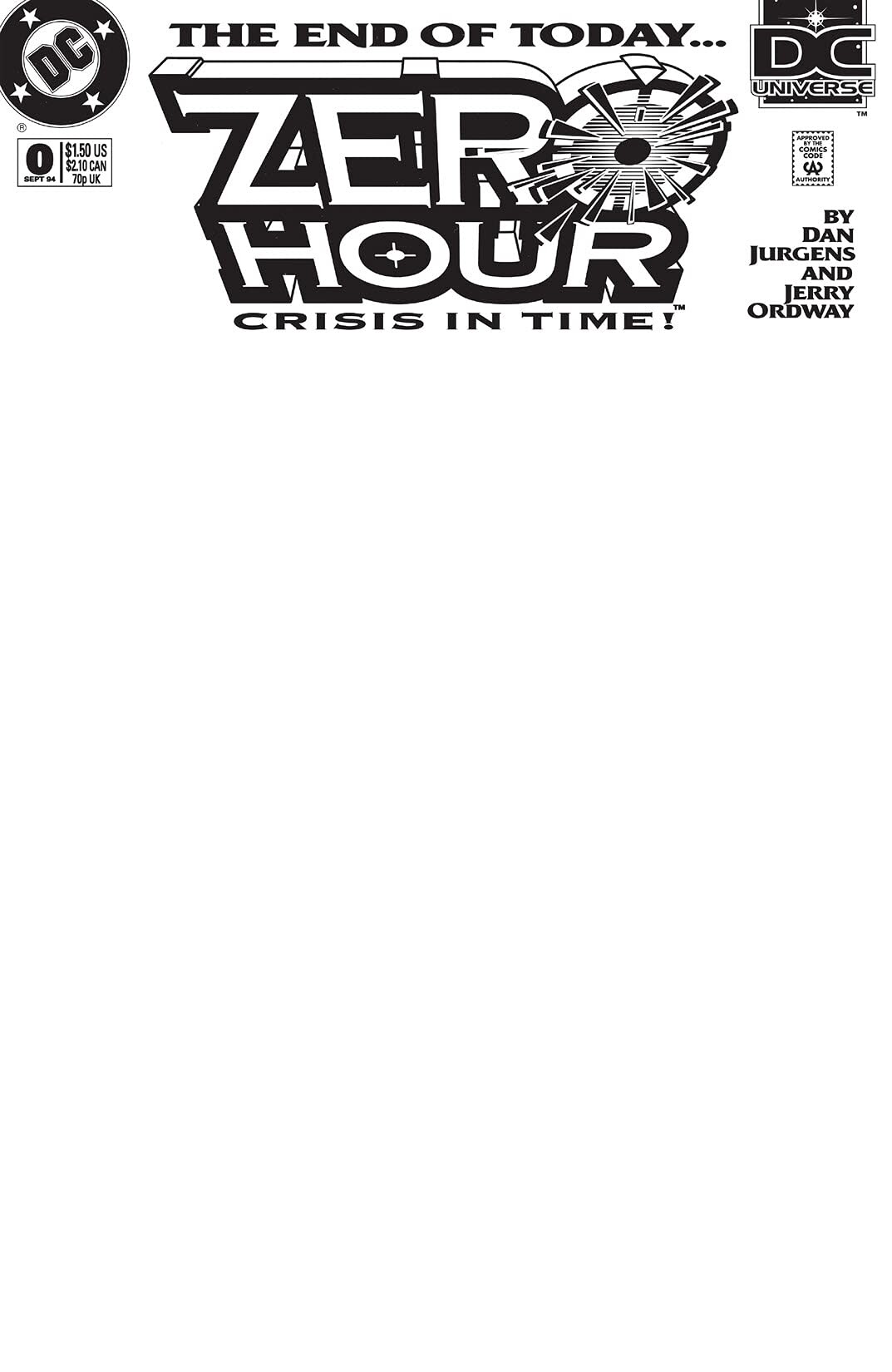 Regular Edition (with barcode on cover). Despite the numbering, this is actually the last issue in this five-part countdown mini-series, designed as such to reflect the story itself, in which the universe is being destroyed by an all-consuming force (entropy) that is working its way from the distant future to the past. The series should be read in reverse order, from four to zero. Various heroes battle the godlike Parallax (Hal Jordan) and his allies in order to prevent him from recreating a new and "improved" universe. Written and drawn by Dan Jurgens, with inks by Jerry Ordway.