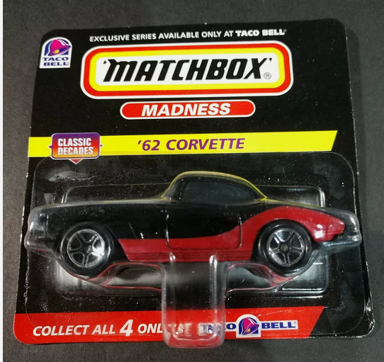 Matchbox Madness 62 Corvette 1998 Taco Bell Exclusive Classic Decades Die Cast Matchbox Madness '62 Corvette 1998 Taco Bell Exclusive Classic Decades Die Cast Ships 1st class mail service USPS. Excluding Tax: $0.68 $7.95 Add To Cart Buy Now Call Us WhatsApp Description Matchbox Madness '62 Corvette 1998 Taco Bell Exclusive Classic Decades Die CastShips 1st class mail service USPS. Delivery Orders are packed and shipped same day if the order is placed before 3:00p.m. Central Standard Time. All orders are shipped via standard delivery. If you require expedited delivery, please contact us.